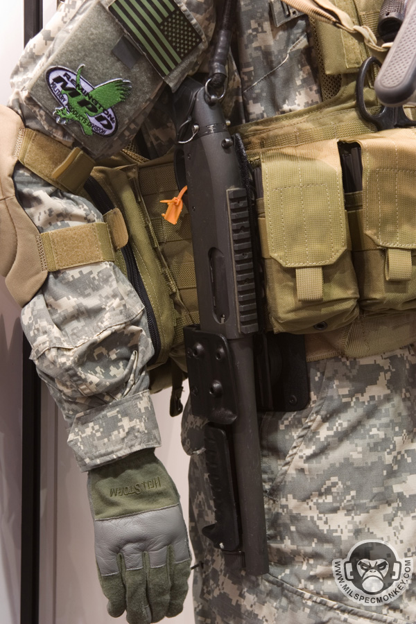 They had a tough looking set of their sniper rifles on display, but my favorite has to be the 870 MCS (Modular Combat Shotgun). The full kit allows one to go from classic stocked shotgun to shorty breaching weapon and then even to a M4 "master key". Stocks and barrels are able to be changed quickly and with no tools.