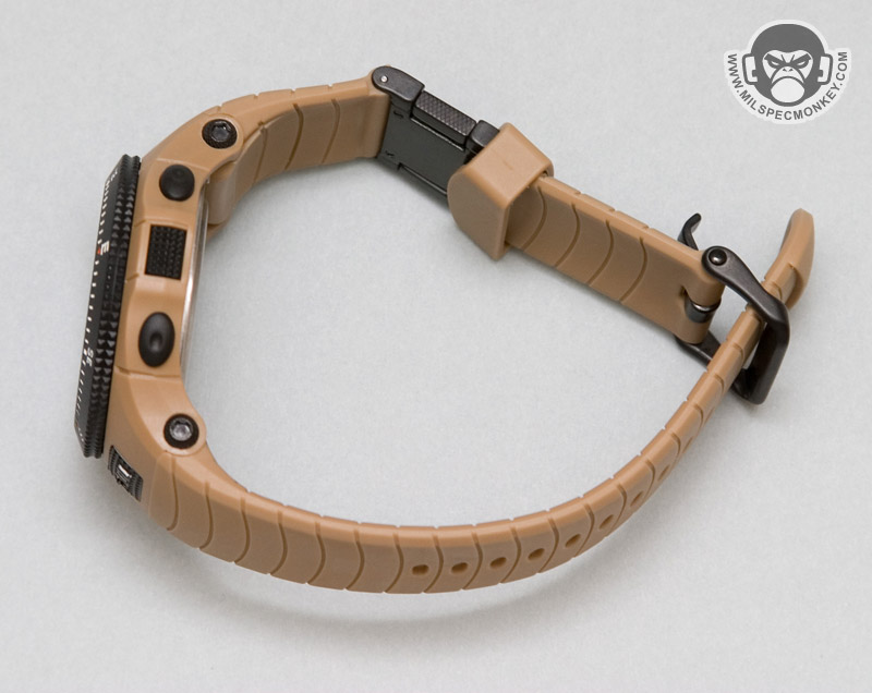 The ballistic calculator is extensive allowing input of: • Temperature °F/°C • Altitude (Metric & US) • Height Above Bore • C1 Ballistic Coefficient • muzzle Velocity • Zeroed Range • Wind Speed • Wind Direction • Target Range • Inclination Angle • The firing solution may be displayed in MILS, TMOA, SMOA, or in number of CLICKS. Core features are: Chrono includes three time zones, alarm, stopwatch, countdown timer and day/date displays. To use with the compass, a turnable bezel with directional markings is standard. Although the watch is already big enough to accomodate most people with or without gloves, a quick release band extension is included. I only see the band extension being used on large people with cold weather gear on, but it is a nice accessory to have standard. The strap has a nice metal quick-side-release system and the pieces can be attached correctly or reversed. The core strap to watch connection is heavy duty with hex screws. Even the case it comes in is pretty swank and the instructions are well done. I have handed this one off to one of my SF buddies for a propper beating. I hope to keep you updated soon on ease of use and general handling.