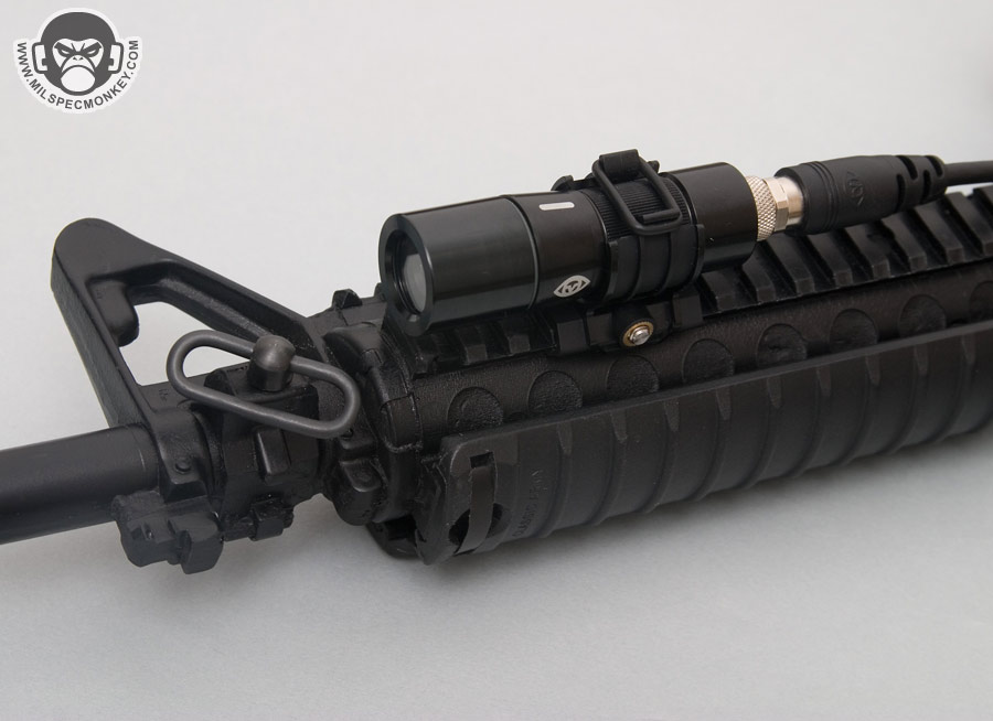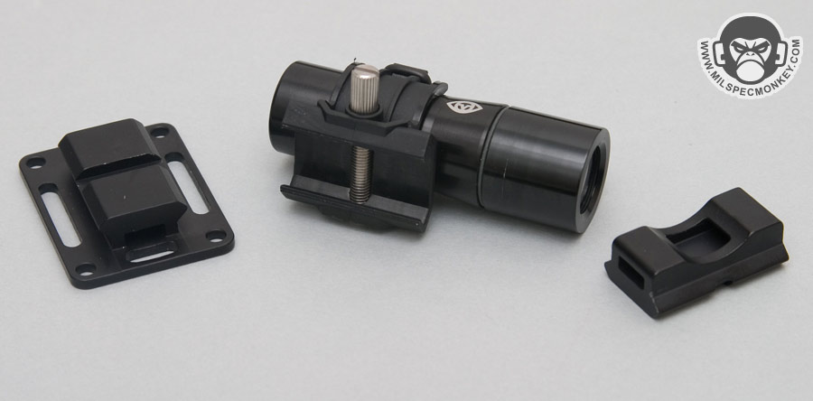 When you first get it out of the box you notice it comes with a nice fold up case and inside is a crapload of stuff. As I said earlier, this thing comes Deluxe, you don't have to worry about buying a bunch of extra crap just to be able to use it. All the core stuff is there: recorder, wires, controller, small mem card, but in addition there is a vast collection of mounting accessories. The main mount piece to attach to the camera is a C-Clamp that will let you rotate the camera to your needs and it can interface with the included picatinny style tube rail mount and wide flange base mount. It was a little confusing at first, but a small rubber O-ring is included that goes on the C-Clap to help make sure the camera rotation stays in place. The tube mount is good for handle bars/rails while the flat mount is good for mounting using screws, zipties, velcro, or whatever else you come up with. Don't forget the C-Clamp is picatinny rail mount ready on its own so can easily go on weapon rails. I don't have them yet, but OPS-CORE is making helmet rail packages for MICH helmets that work awesome for the POV.1 system. Until I get one of those, I plan on velcro-ing up my wide flange base with hook velcro to attach to the loop velcro on my MICH.