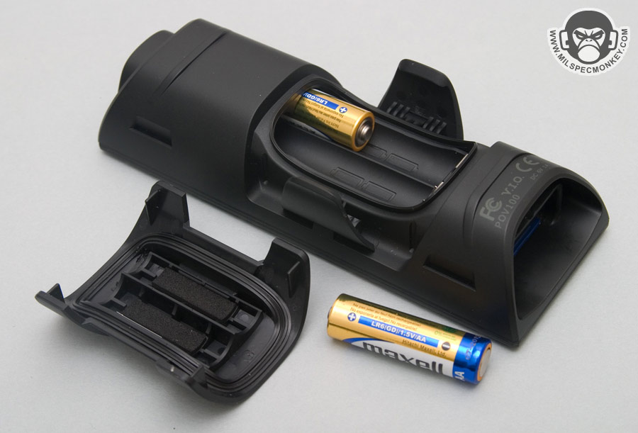 When getting started for the first time, the wire is side specific so you have to make sure the correct side goes into the camera and recorder. There is an eye icon on the camera end to give you a hint, but since it is black on black it is a bit subtle. It would be nice if the wire only connected correctly, but perhaps that would cause other problems. If you do put the wire on backwards, the recorder will act like no camera is attached and tell you so. A cool thing about the wire is that a MIC is fully integrated. You don't have to worry about placement or power of the MIC like you do on other helmet camera solutions. The POV uses SD-cards for memory which isn't quite as cool as CF cards, but still work fine and are affordable. Memory is easily inserted into the bottom of the recorder and a 1 gig card is included. Also in this bottom area is a input hole for a separate microphone, USB port, and an A/V out hole. If you plan on getting wet, the whole bottom has a water tight cover to make the recorder rated for being 1 meter deep in water. Since this cover suction seals itself, it can be hard to take off so I recommend attaching cord to the screw ring. As a side note I wish the supplied A/V out cable came with a L-type connection since the straight version supplied protrudes a bit from the recorder. When in a pouch it puts more stress on the A/V out hole and cable. Moving to the back is the battery compartment. 2 plastic flaps hold the water-tight cover in place. Although the flaps are easy enough to open, there isn't any easy way to grab on to the actual cover so one ends up usually prying it out with their fingernails. I wish this was easier, but I understand the design dilemma to be water tight and not have extensions sticking out from the recorder. Inside is the good stuff in which the recorder uses simple 4 AA batteries. I am quite happy with this decision since AAs are easy as hell to get a hold of in normal and rechargeable form. The battery life is about 4 hours on rechargeable batteries if recording the whole time and lifetime increases if idling instead of recording.