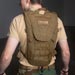 The shoulder straps are full-on including a sternum strap making it a solid ride when directly worn on a person. There is good attention to detail where D-rings and the slack management system is even integrated in the main webbing straps. When it is desired to be mounted on a vest, the backpack straps can be tucked into the back sleeve and the lower connection points also have pockets on the lower back to be stowed in. 4 Webbing loops with slick-clips on the sides offer easy attachment to PALS webbing along with 2 repair SRBs along the upper middle. Like on the Armorbak, the repair buckle strap allows cinching down to create pressure. Note these straps are hidden under the flap on my main exterior picture. This flap uses a zipper and velcro seal system giving a fairly smooth opening with coverage security. On the upper portion is a 1" strip of loop velcro for name tape mounting and a substantial webbing loop is up top for hanging or to use as a handle. On the lower front of the exterior is even some PALS webbing (3x3) to allow mounting of a small pouch or 2.