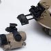 The L4 G24 Mount allows attachment of a variety of NVGs to a MICH/ACH helmet using an Ops-Core VAS, standard Army shroud, and similar mount setups including Wilcox's own shrouds. Made of light weight Aerospace grade metal the mount feels like a solid piece of gear like that expected in high end AR-15 accessories. For other first hand impressions it seems like there is a lot going on and frankly there is to offer all the adjustability options. I try and show all the angle and distance adjustment options in the pics, but also attached the manual which helps convey it even further. I was happy to see I could really dial in the angle and distance from my face, even eye side. Although made clearly as NVG on left eye design priority, pretty cool that eye switching is still available. The finer adjustment knobs and levers are a little harder to get to which makes sense as generally one doesn't want to mess with them once dialed it while the main up/down button is fairly easy to activate. Although the main up/down button is on the left side it is still easy to access and activate with either hand. The eye distance adjust buttons are different yet also fairly easy to engage to adjust between wearing goggles or not.