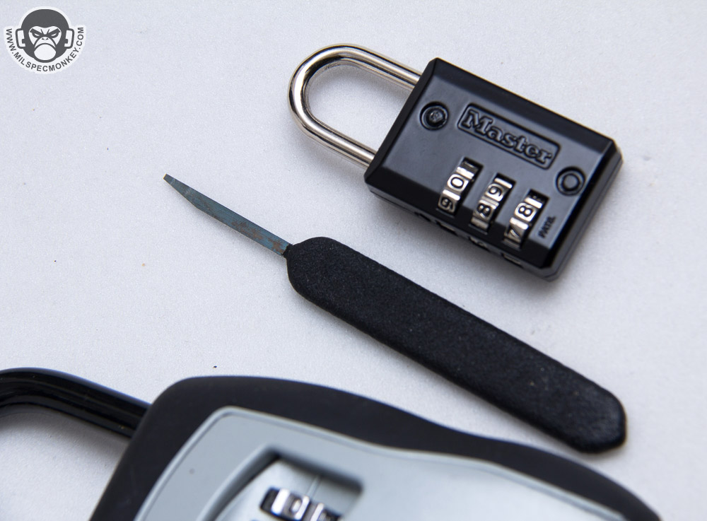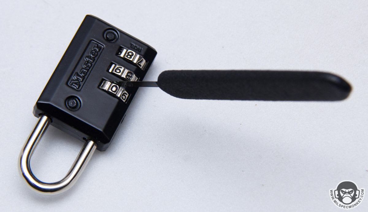 With different lock types typically comes the need for different tools to defeat them. When multi wheeled combination locks come your way, the Ultra Decoder is the one stop solution to defeat the vast majority. Rather than dealing with pushing pins in common locks, the decoder is more of a feeling device. Made of very thin metal it allows the user to place it to the side of the wheels to search for changes on the axle. While moving the wheels one feels for any changes that occur from flat spots or grooves that in turn reveal the unlock code. In my experience so far, the technique certainly takes trial and error on getting the right angle to feel out the axle, but like many things becomes easier with more practice. Alignment will depend on the lock type so once all grooves are found, the user should try to unlock and if unsuccessful shift all the numbers by 1 and try to unlock, repeating the process until unlocked. Of course stop if repeating already tried combinations as this would be a sign of a failed decode.