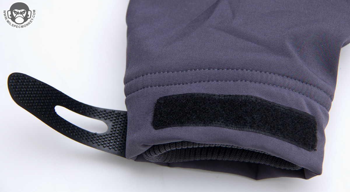 The cuffs have internal ribbing to help give a constant seal to keep the cold out and have the typical adjustment straps. As a heads up to long term durability, the male side adjustment strap is rubber like with incorporated hooks. This is nice, but is harsh on the poor little traditional loop pile so will tear it up quickly. If you adjust cuffs a lot, be prepared for the loop to need to be replaced.