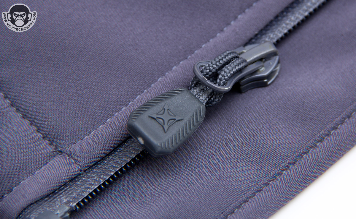 Vertx certainly didn't skimp on the weatherproofing for the zippers which can be a double edge sword. This makes them weather resistant, but also makes them difficult to zip back up. The bicep zippers in particular force one hand operation due to position, and then there is so much resistance to the zipper that one needs to slowly walk the zipper up using fingers to push or give it the ol' stiff arm trick by grabbing the jacket cuff in one's fist to add fabric tension. Thus the chest and hand pocket zippers tend to be easier to manipulate as there is the option to use both hands. I was pleased to see the pocket layout is symmetrical so no particular side is jipped. They also didn't skimp on the zipper pulls as nice rubbery / grippy ones are used for all core pockets and a unique plastic logo pull is used for the main zipper.