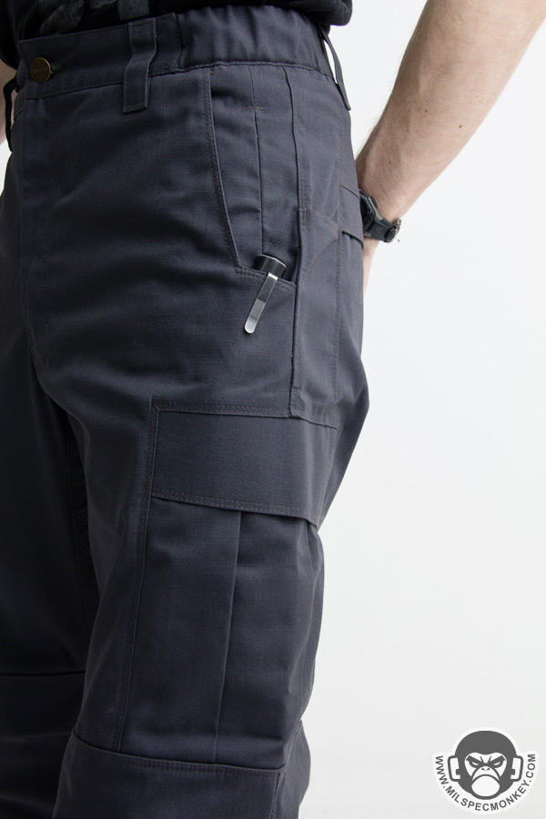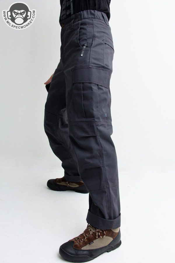 The Phantom LT is pretty much the same layout as the original Vertx Tactical Pant with the main change being using a 65% Poly / 35% Cotton 6.5oz mini rip-stop fabric with IntelliDry treatment. The more poly content helps with durability and color retention while the IntelliDry treatment is supposed to repel liquids on the outside while wicking moisture away on the inside. Upon my sprinkle water testing, the fabric did seem to repel water a little better, however this is only for light sprinkles and if you get constant drop say from a good ol' raining, they are still going to get wet fairly quick. As for wicking, hell about anything is better than full cotton.
