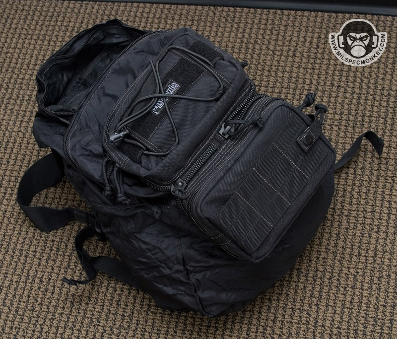 The Merlin is another great example of Maxpedition's innovation. Starting off looking like an innocent GP pouch, the main compartment expands out to transform the pouch into a full backpack.