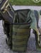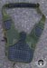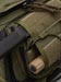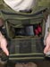 The back area is for the most part totally new. For cooling standoff, foam with rubberized nylon grid is used which looks like it will be much more durable than the air-mesh on the Jumbo. A good dose of this is on the back and the shoulder strap connection areas. Up on the strap areas are sleeves which work well for holding folding knives. I show these sleeves can fit multitools in my pictures, but they are not the most comfortable things to carry there. In the middle is another CCW pocket which is closed with a hypalon flap. The closure is velcro with a metal snap in the middle and a D-ring is up top for an easy grab to get to the pocket. The velcro belt loop connection is also on the hypalon area which can fit up to 2.5" belts. For those who don't know what hypalon is yet; it is really heavy duty rubber-ish material with little give and non-slip qualities. Inside this back area is another 7" x 8" loop field for another place to put modular velcro attachments. Although I do not have one to try, this pocket is also made to fit a 50oz. or smaller hydration reservoir and has a webbing loop for a hanging point. Despite being easier to open up, I don't like this area as much for CCW. The pistol handle can be fairly visible when viewing the side of the pouch and you can't use the belt strap since it interferes with pulling the pocket open. A pistol is easier to get a hold of without the modular holster, but then it is less secure and could flop out while running. Even though I don't sound so jazzed about this back pocket, it is nice to have it there rather than nothing and likely others will find great uses for it.