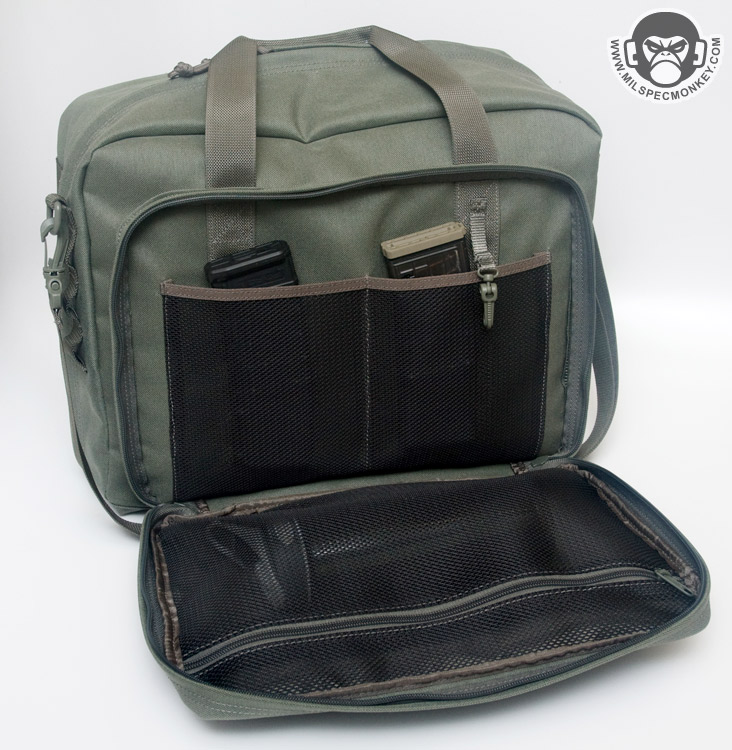 This "medium" size allows for a nice array of holding options. I've been putting a lot of random stuff inside, but at the moment this bag is making for a mean ass documents / paperwork bag. One can geek out and make it a laptop bag that also holds all the accessories and more or go full tactical and just pile in gear and ammo. Of course there is always the option of somewhere in between. Besides having less compartments I'd say the main other way it differs from the MPB is the main compartment opening style. Some users will appreciate the full access style opening of the Methuselah more.