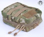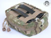 Originally intended for medical supplies, but can also work well as a general purpose pouch with built in elastic and pockets. The pouch can be zippered down for a full 180 degree opening, but a 550 cord and cordlock system is standard to adjust and limit the opening. Has bonus PALS and loop velcro on the front, a very full featured pouch especially for the price, $32.95. Comes with long Malice Clips.