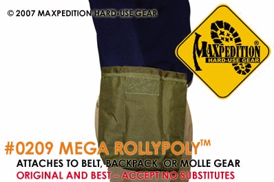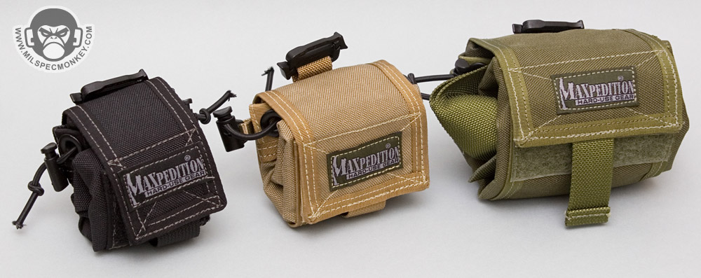 Also the main closure is by non-elastic cord and cordlocks rather than shockcord. With this size you can get into bigger items such as gas masks, but in general works great for anything of large size yet minimal weight. For the civi side these work great for groceries. Back to more MIL uses, also works great as a prisoner hood. In that use the cordura perhaps is not the most breathable material, but I think you get the idea. Currently available in OD, Khaki, Black, ACU. Malice clips not included. Check out the animated gif link for a quick foldup demo.