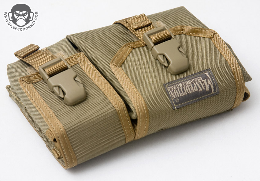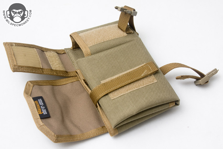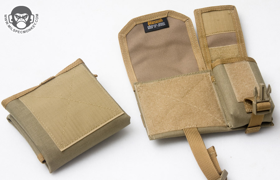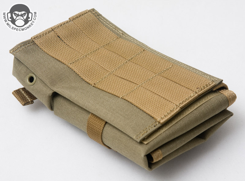 To accompany the map pouch is the gadget pouch to the side which is just like the standalone version of the GPS/Compass/Strobe Pouch, however has an adjustable SRB. Although more slack to deal with, I like the adjustment capability better. Anyway, hence the name you can fit your navigation gadget of choice inside. The back of the patch kit has modified PALS spec to allow some channel fudging. 2, 3" Tac Ties will work, or feel free to use more if a tighter mount is desired.