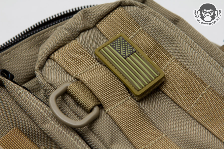 As a tag along I wanted to show the T-ring as well; A simple way to add a D-ring to anything with PALS webbing. For installation I found one can rotate the D-ring sideways or fold the webbing tab, which should be noted has loop velcro for some bonus morale size patch options. As a small down side I wish the D-ring slack was sewn down since as is it can get rotated away from its desired proper position. Luckily this issue will not affect holding capability, but the unit can be pulled up-out with a side rotated D-ring.