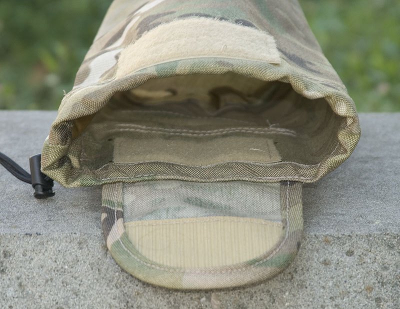 Notes: Simple, but well made fold up style pouch. Back has a loop formed by the webbing pannel that can accomodate up to a 3.5" belt. My example shows a bit of a half-assed fold up job, could be more condensed by folding in the sides. Comes with Malice Clips.