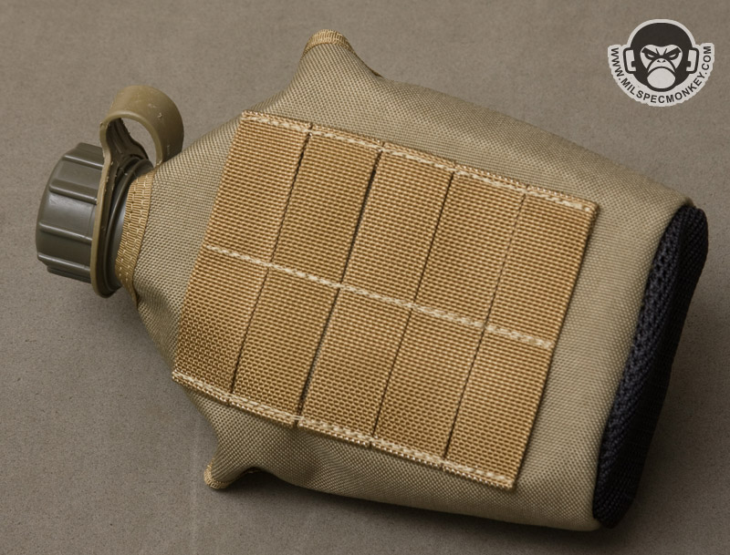 This pouch is a handy way to carry the classic 1 quart USGI canteens which can be purchased on the cheap at surplus stores. To clarify, the canteen is not included. The back has a full set of PALS webbing to work with 5" Tac Ties or similar attachment systems. As an improvement to older designs, the bottom is mesh to allow easy drainage. Another solid feature is the SRB (buckle) female end is mounted directly to the pouch so it will always be in the same place. Since the cap holder protrudes from the cap, it may require some effort to release the canteen from the Y-shapped flap. Having the cap connector face forward helps this issue, otherwise just be aggressive with the flap and you will be fine. The main down side I had with my testing was that the flap tension was non adjustable, this is an issue since the flap was not tight enough to firmly secure my canteen. It was by no means going to come out of the pouch, however the canteen slightly bounces around during heavy movement.