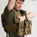 Getting the PIG on and off is easier than most carriers due to the accessible shoulder SRBs and split front panel. Due to this, the user can just release one shoulder buckle and one cummerbund side to easily get out, not taking too much longer than a quick release system. For the side straps an elastic based and PALS cummerbund are available. The elastic one being simple and lightweight for those who want simplicity and the PALS cummerbund for those who want more mounting options. Since my monkey ass is so small, I was only able to get the elastic cummerbund to fit as tight as desired due to cheating the back connection tight with overlap. The PALS cummerbund is somewhat big and uses shock-cord to connect so I wasn't able to get it tight enough. As a work around one can use shock-cord to tie the PALS of the sides to the PALS of the back panel. This can take some trial and error on what cord thickness to use and how many times to wrap to get the balance of a good fit with some elastic give for breathing. The PALS cummerbund on its own doesn't have any stiffener which makes it flexible and generally lightweight, however will sag a little if heavy equipment is mounted. Not to be forgotten, pocket addons are available for 6"x 6" side plates as well as 6"x 8" & 7" x 8" models for both elastic and PALS cummerbunds. Using a nice combo of elastic, stiffened back, and adjustable webbing loops, the pockets allow one to mount a side plate, or both a side plate and a soft armor backer behind it without a bunch of flopping around.