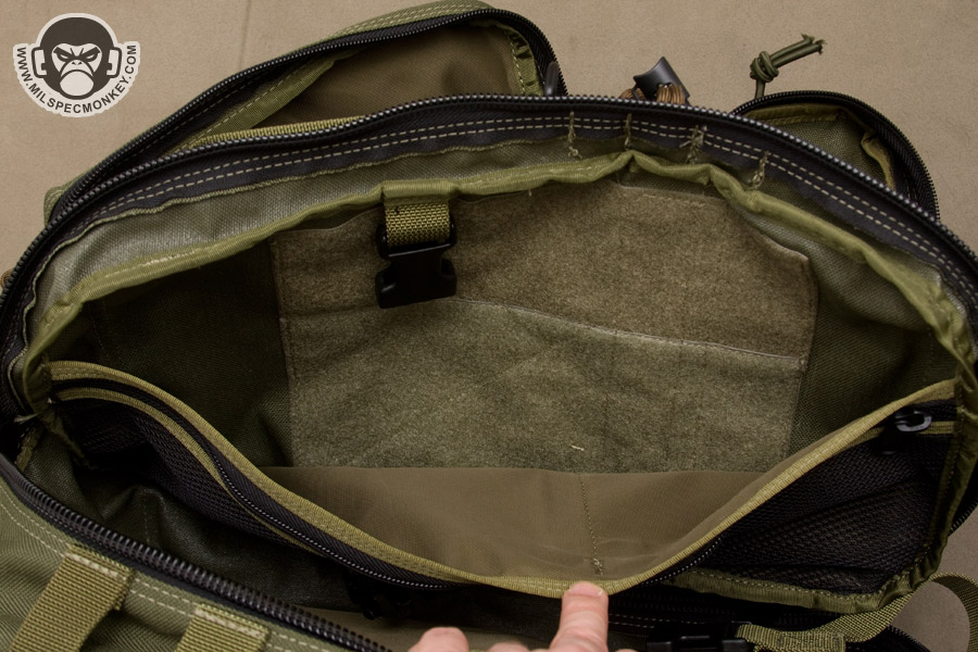 Main compartment approx 21” x 13” x 8” with tie down strap