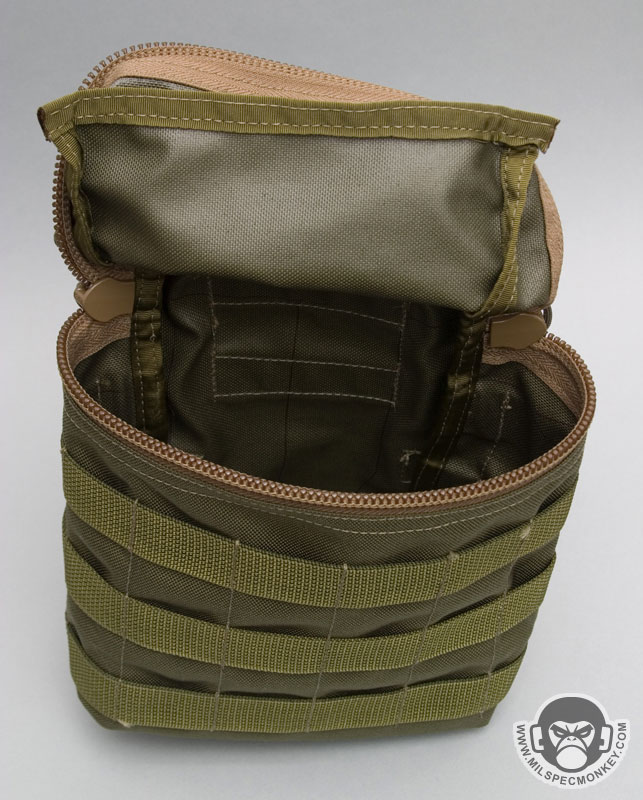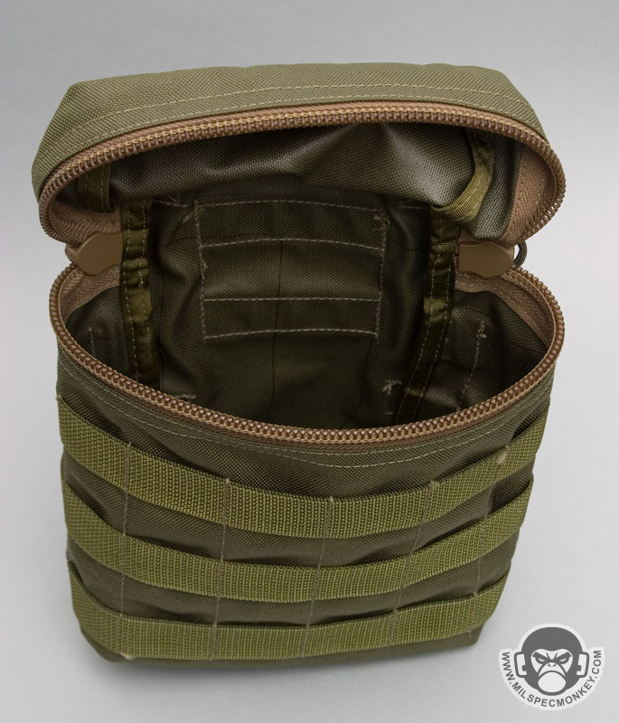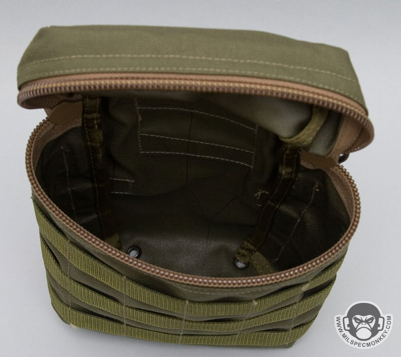 Zipper CCW pocket: 9” wide x 11” deep with 7” x 8” loop field